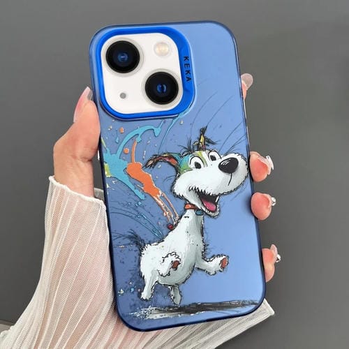 Funda para Teléfono iPhone 14 Imd Animal Graffiti TPU + PC Doble Cara (Perro Corriendo)
