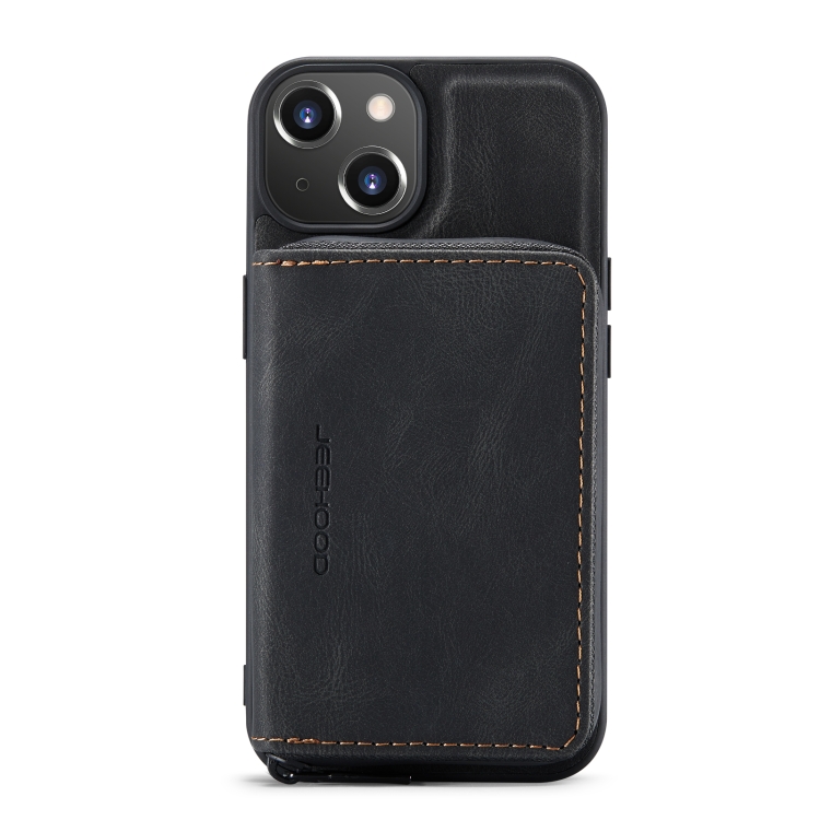 Funda de Cuero para iPhone 14 Jeehood con Cremallera Magnética (Negro)