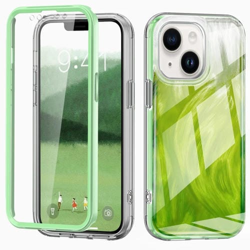Funda para teléfono iPhone 14 Plus 2 en 1 Imd Gradient Feather PC y TPU (Verde)