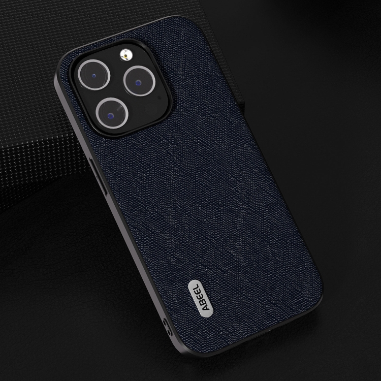 Funda de Teléfono Abeel Cross Texture para iPhone 14 Plus Cuero Genuino (Azul)
