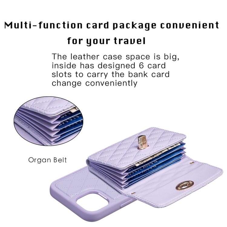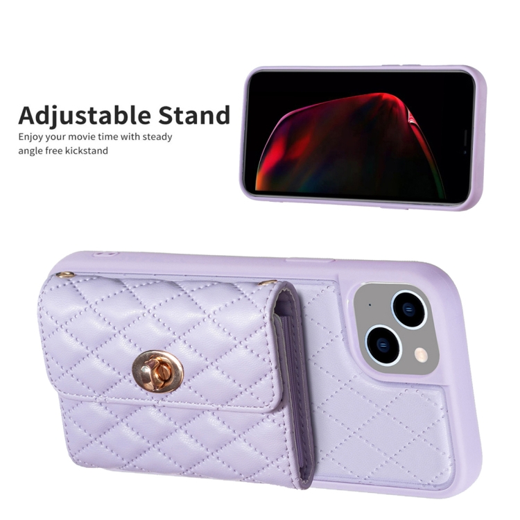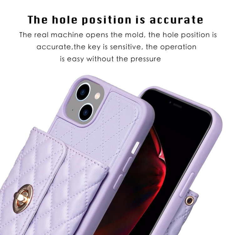Funda para iPhone 14 Plus Rombal Caja de Cuero con Hebilla de Metal Horizontal (Púrpura)