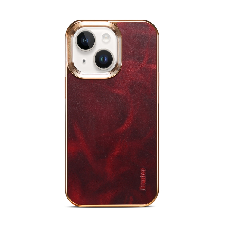Funda para iPhone 14 Plus Denior Oil Wax Cowhide Plating Phone Case (Rojo)