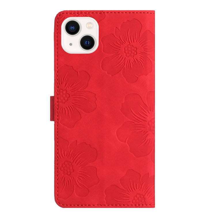 Funda de teléfono iPhone 14 Plus cuero con estampado de flores en relieve (Rojo)