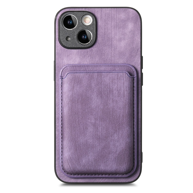 Funda de teléfono para iPhone 14 Plus con Bolso de Tarjeta Magnética de Cuero Retro (Púrpura)