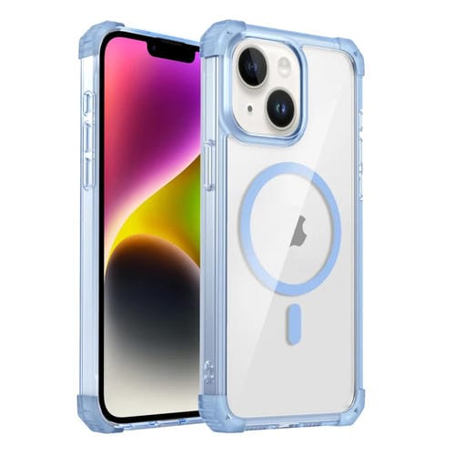 For iPhone 14 Plus Clear Magnetic MagSafe Phone Case (Blue)