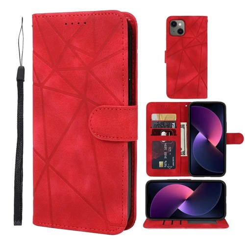 Funda para iPhone 14 Plus Skin Feel de Cuero con Líneas Geométricas (Rojo)
