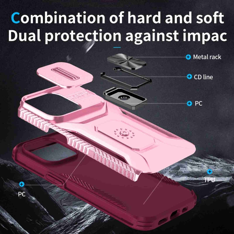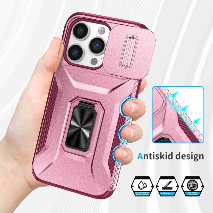 Estuche para Teléfono iPhone 14 Pro con Soporte Deslizante para Levas (Rosa + Rojo Rosa)