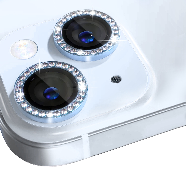 Protector de Lente de Cámara Northjo para iPhone 15/15 Plus Anillo de Diamantes Imitación Metal Vidrio Templado (Azul)