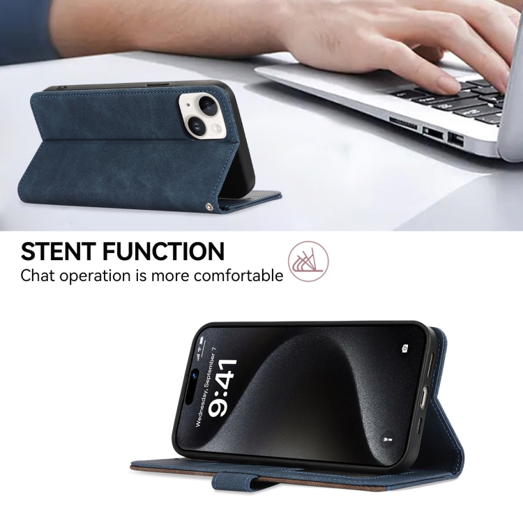 Estuche Magnético de Cuero Abeel para iPhone 15 Color Block con Protección RFID (Azul-Marrón)