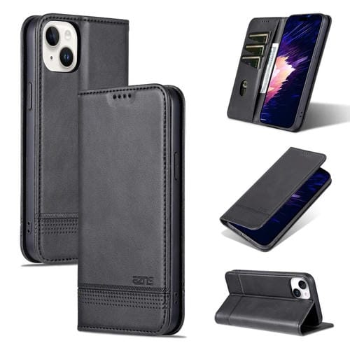 Funda de Teléfono Azns para iPhone 15 Cuero Textura de Becerro Magnético (Negro)