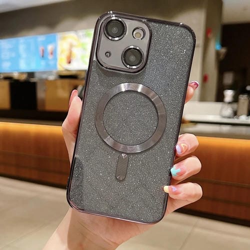 Funda para Teléfono TPU para iPhone 15 con Galvanoplastia y Purpurina Magsafe (Negro)