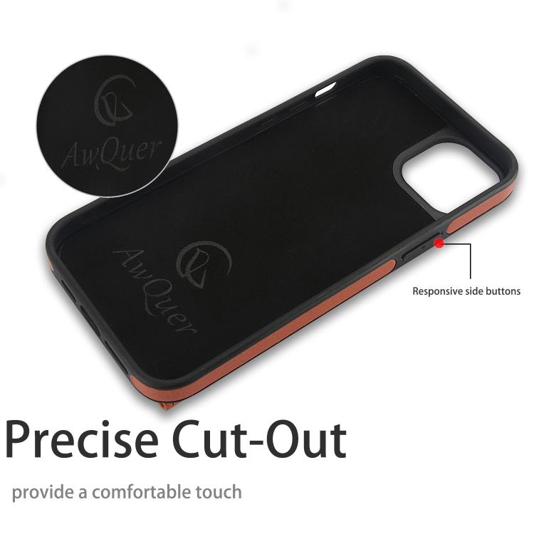 Funda para iPhone 15 Plus Awquer Cuero Tapa Horizontal Tarjetas Soporte (Marrón)