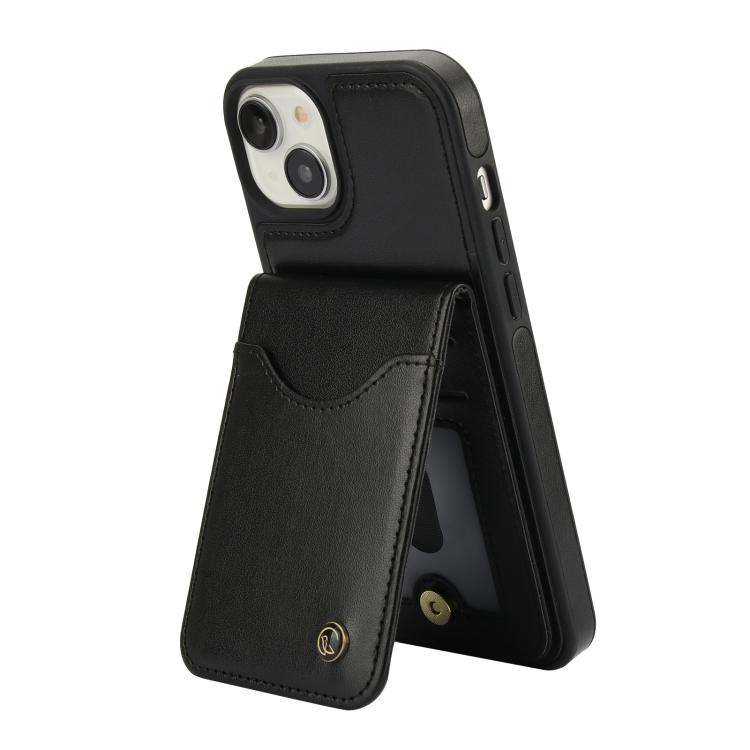 Funda para iPhone 15 Plus Awquer Cuero con Tapa Vertical Tarjetas y Soporte (Negro)