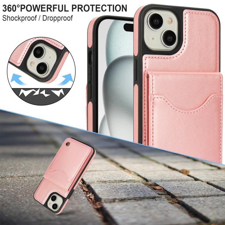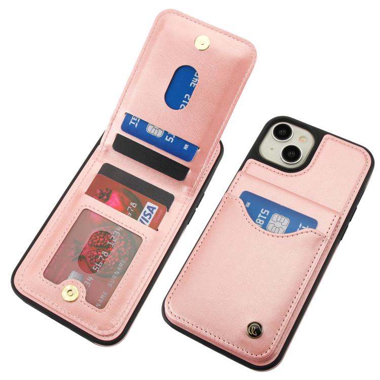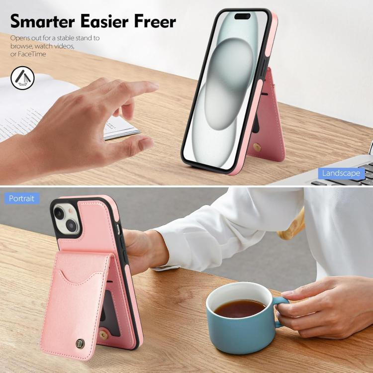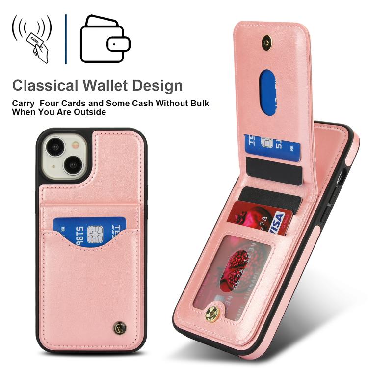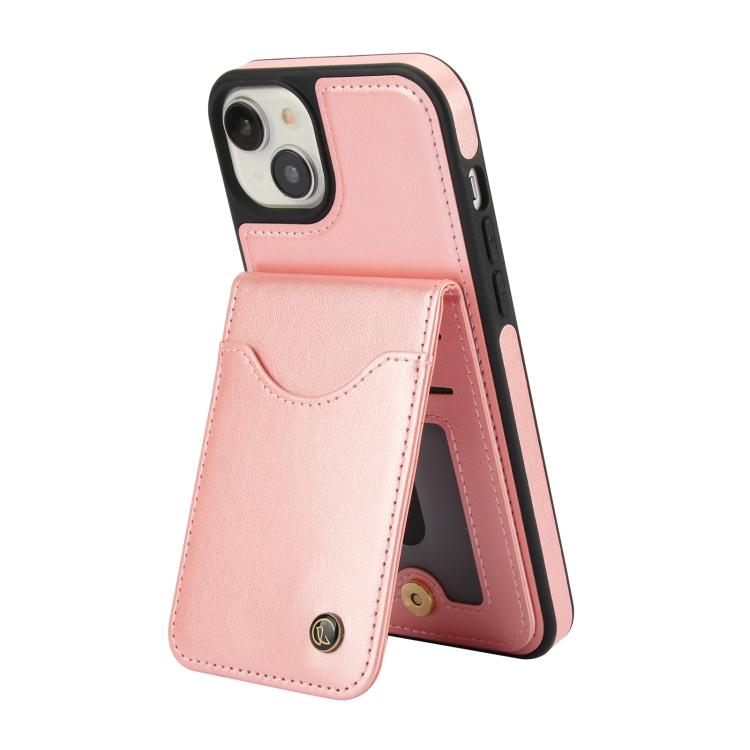 Funda de Cuero Awquer para iPhone 15 Plus con Tapa Vertical para Tarjetas y Soporte (Oro Rosa)