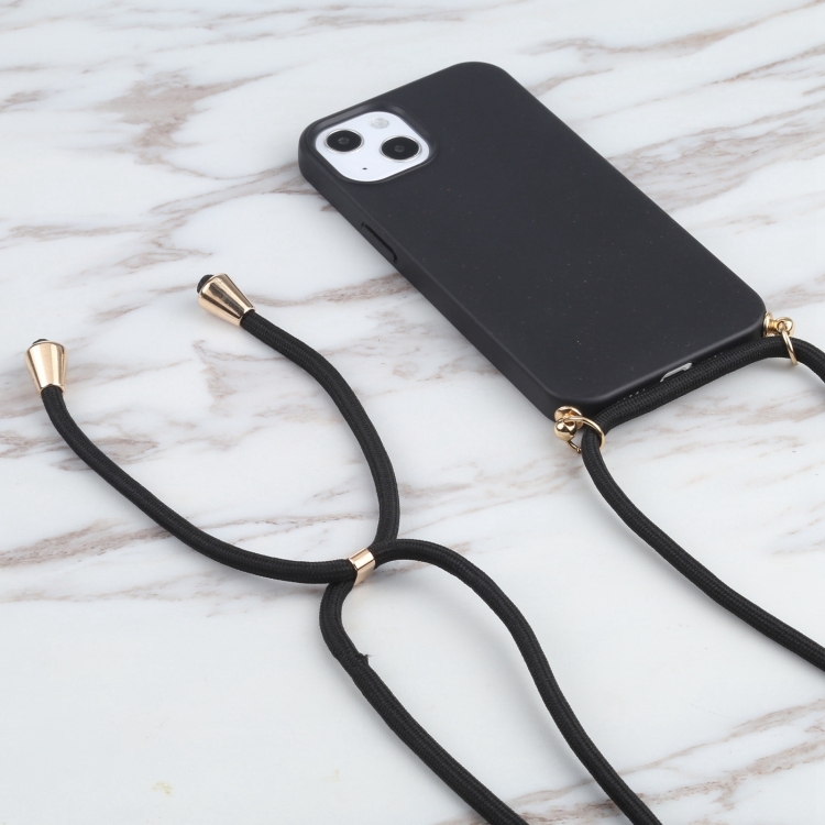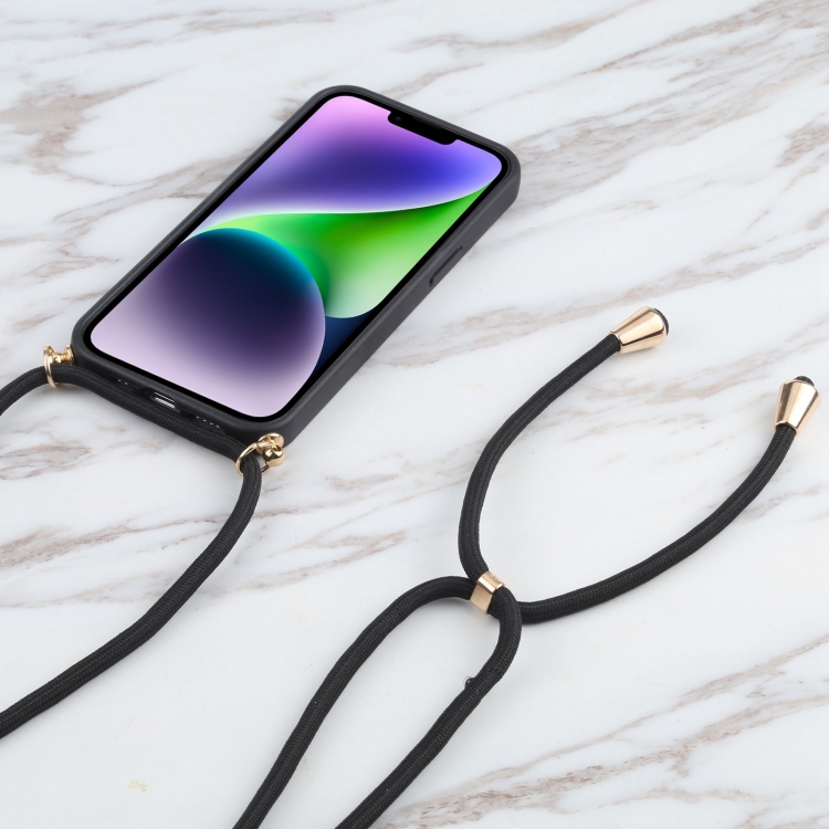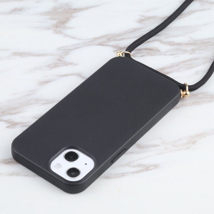 Caja de Teléfono para iPhone 15 Plus TPU Paja de Trigo con Cordón para Cuello (Negro)