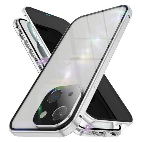 Estuche para Teléfono iPhone 15 Plus Vidrio Templado Magnético Doble Cara Anti-Peeping (Plateado)