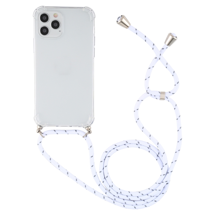 Funda para iPhone 15 Plus TPU Transparente a Prueba de Golpes Cuatro Esquinas con Cordón (Gris Blanco)