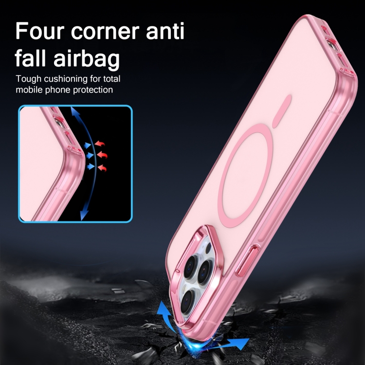 Caja de Teléfono Híbrida TPU Imd Magsafe PC Electrochapada para iPhone 15 Pro (Rosa)