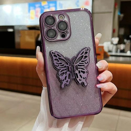 Estuche para Teléfono TPU iPhone 15 Pro Mariposa 3D Brillo Degradado Galvanizado (Púrpura Degradado)