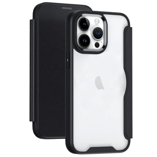 Funda de Cuero para iPhone 15 Pro con Tapa Adsorción y Bloqueo RFID (Negro)