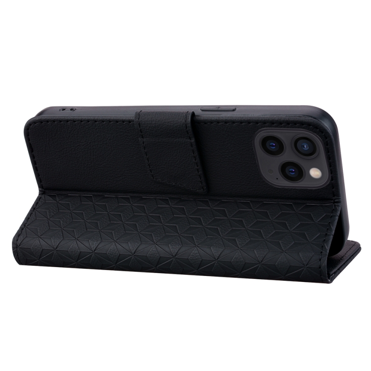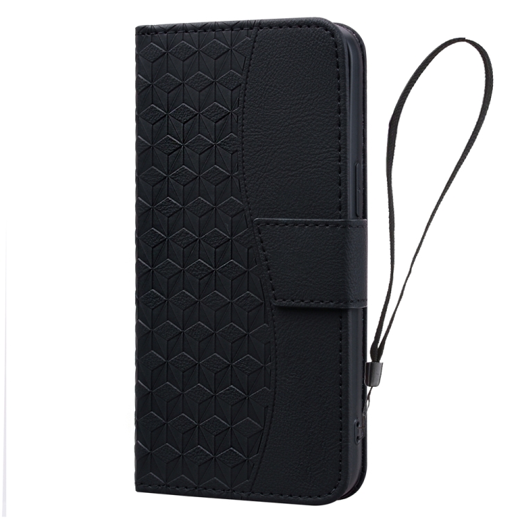 Funda de Cuero para iPhone 15 Pro Max Business con Hebilla de Diamante y Cordón (Negro)