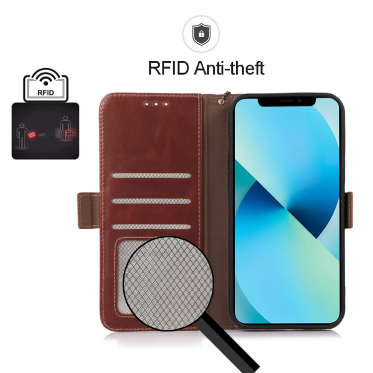 Estuche para Teléfono iPhone 15 Pro Max Crazy Horse Cuero de Vaca Capa Superior (Marrón)