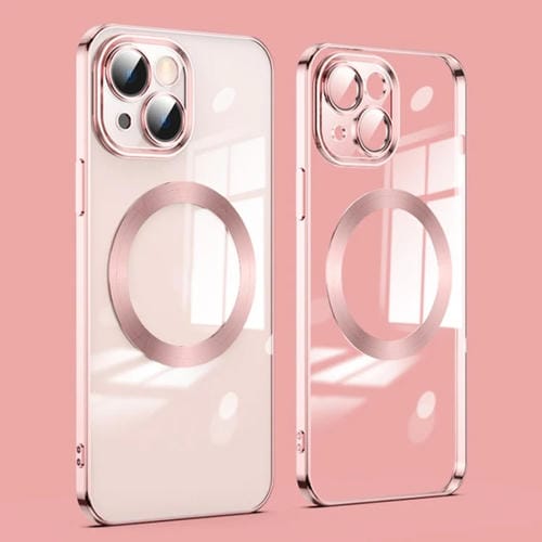 Protector de Lente para iPhone 15 Magsafe Caja de Teléfono Galvanizada (Oro Rosa)