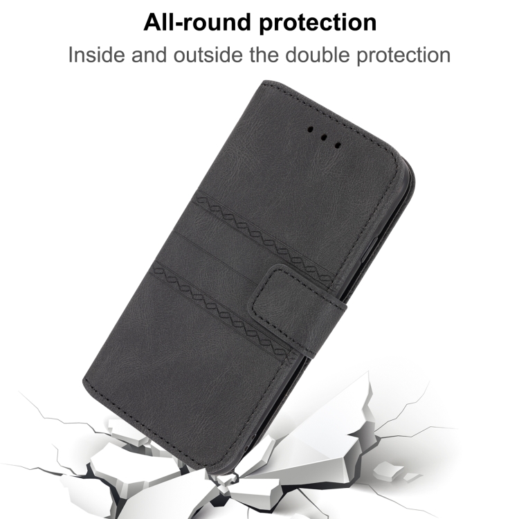 Funda para Teléfono iPhone 16 Pro Cuero Sensación de Piel Rayas en Relieve (Negro)