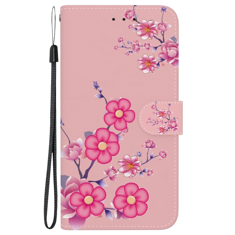 Funda para Teléfono iPhone 16 Pro Cuero con Dibujo Coloreado y Textura de Cristal (Flores de Cerezo)