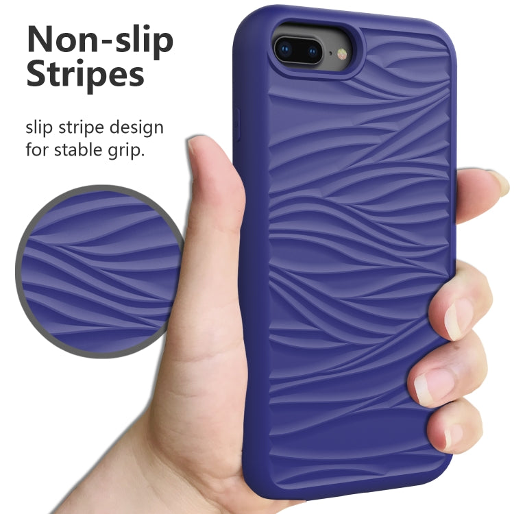 Funda Protectora 3 en 1 para iPhone 6/7/8 Plus Wave Pattern Silicona y PC (Azul Marino + Olivina)