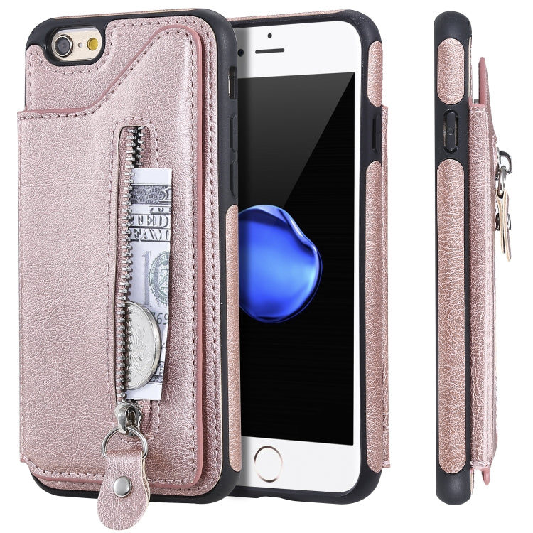 Funda Protectora para iPhone 6 con Cremallera y Doble Hebilla a Prueba de Golpes (Oro Rosa)