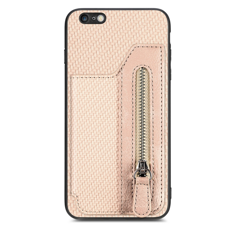 Estuche para teléfono iPhone 6 Plus 6S Plus con billetera cremallera horizontal fibra de carbono (Caqui)