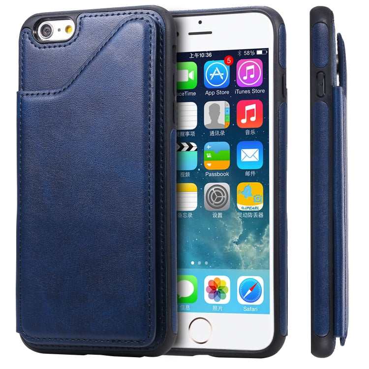 Funda Protectora iPhone 6 Plus Textura de Becerro a Prueba de Golpes con Soporte y Tragamonedas (Azul)
