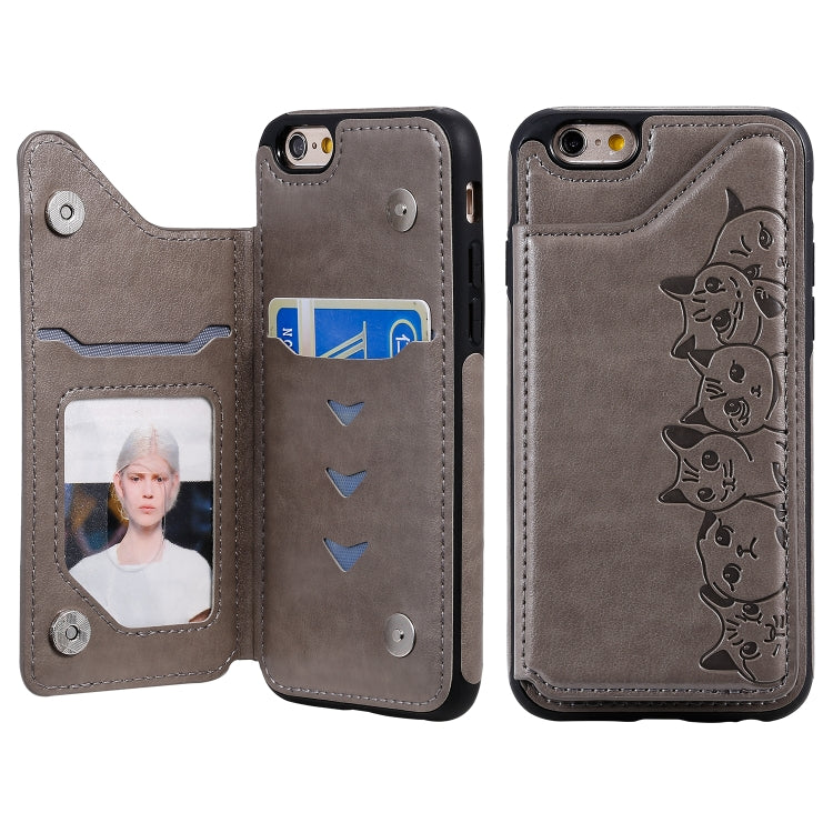 Funda Protectora Six Cats para iPhone 6 con Patrón En Relieve, Soporte, Ranuras para Tarjetas y Marco de Fotos (Gris)