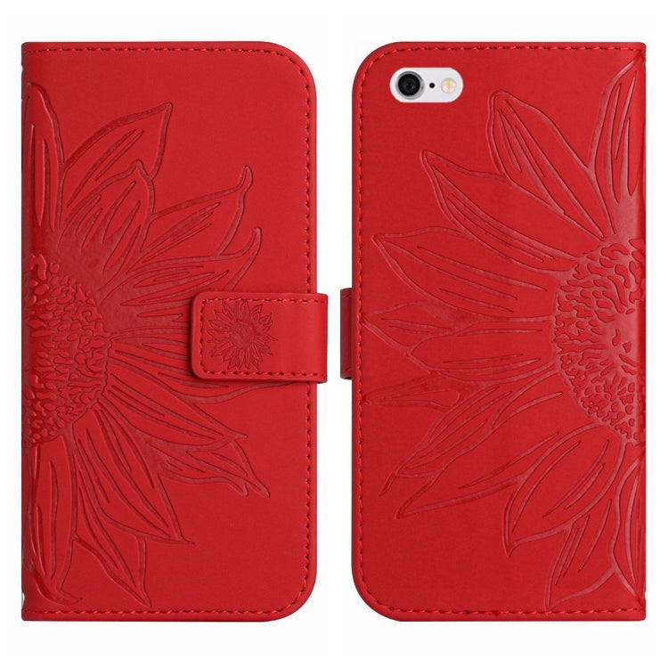 Funda de Cuero para iPhone 6S Plus Skin Feel Sun Flower Pattern Flip con Cordón (Rojo)