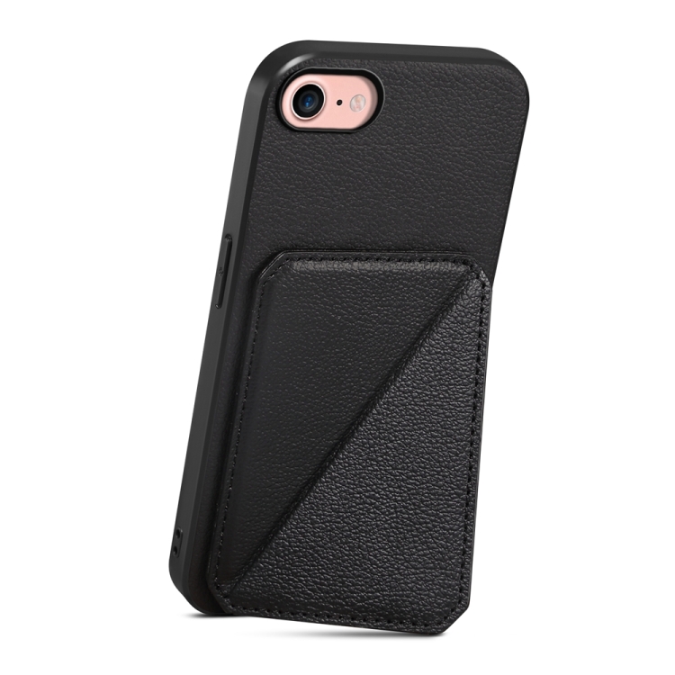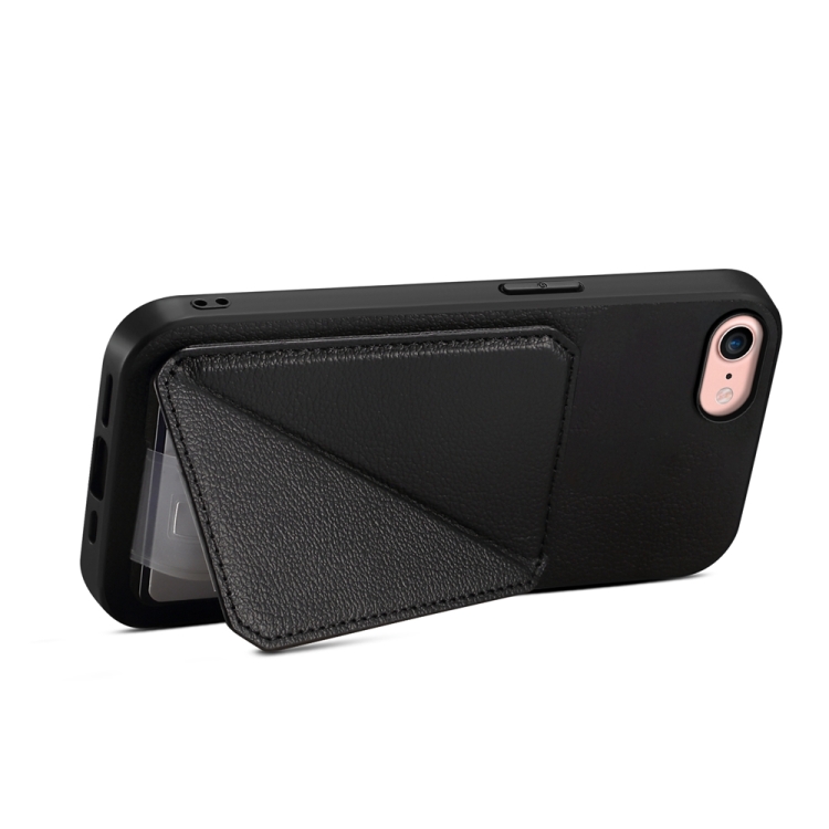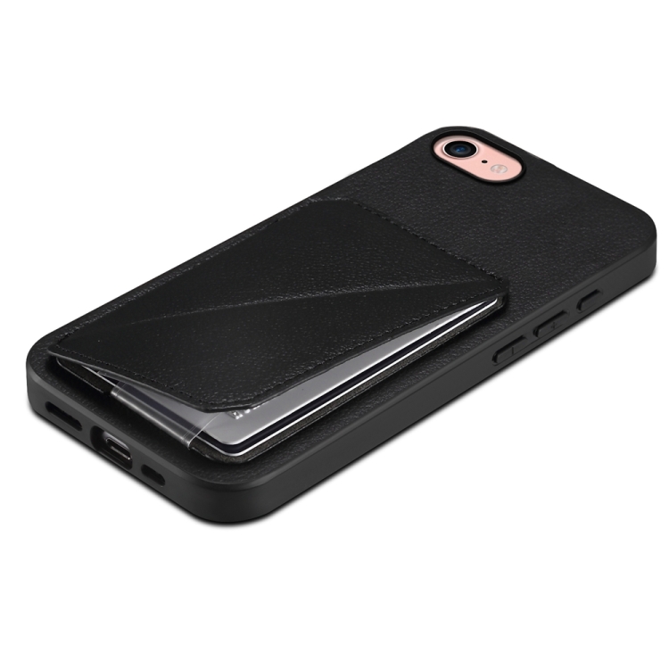 Funda para Teléfono iPhone 7/8/SE 2022 D04 con Ranura para Tarjeta Doble Textura de Becerro (Negro)