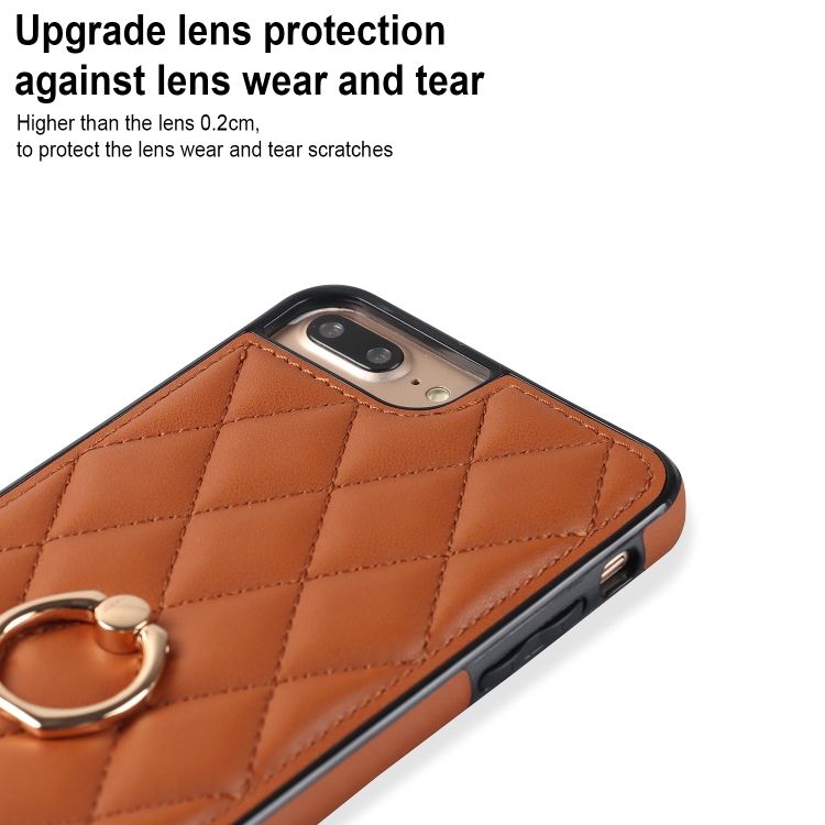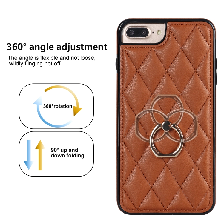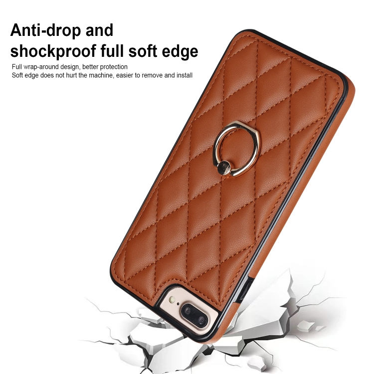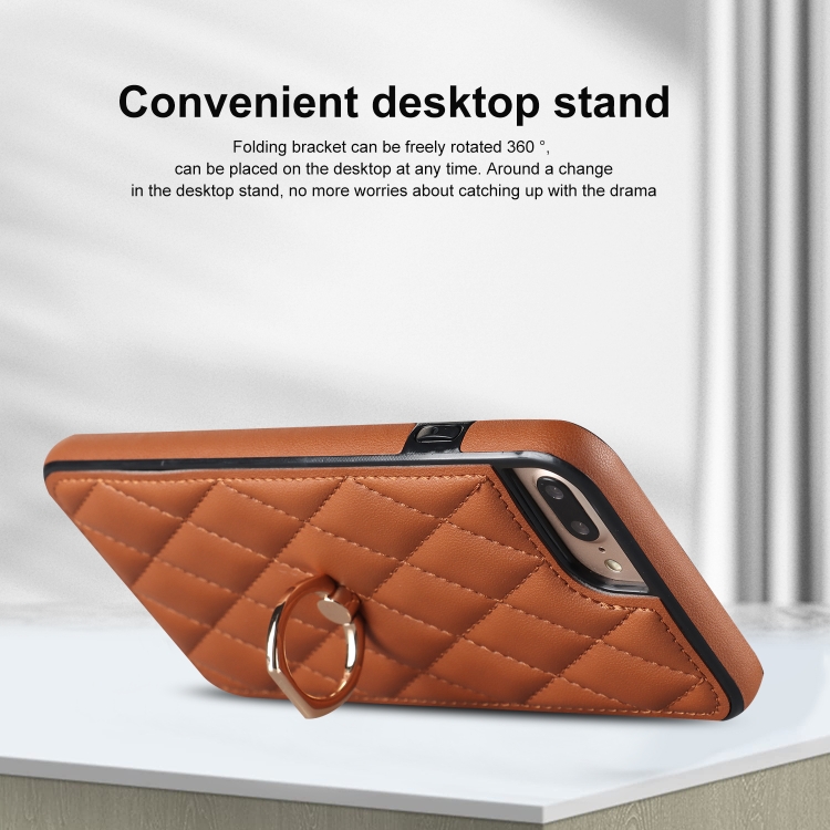 Estuche de Teléfono iPhone 7 Plus 8 Plus Cuero Pu Rómbico con Soporte para Anillo (Marrón)