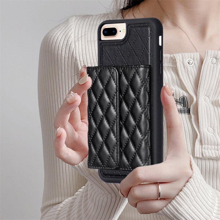 For iPhone 7 Plus / 8 Plus Horizontal Wallet Rhombic Leather Phone Case (Black)