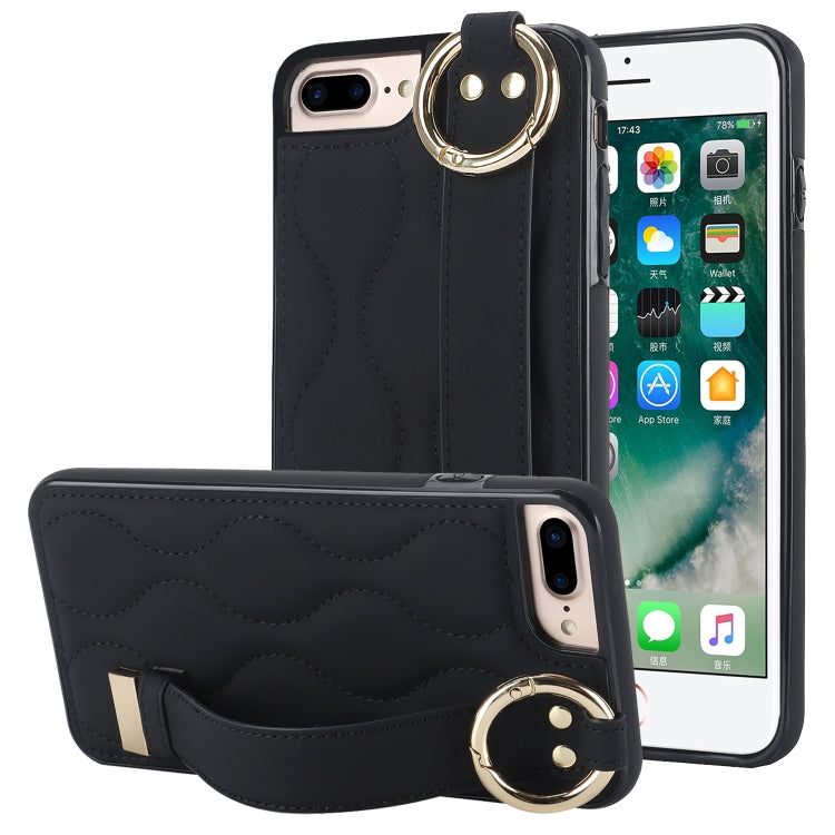 Funda para Teléfono iPhone 7 Plus Antideslizante Cobertura Completa Anillo PU con Muñequera (Negro)