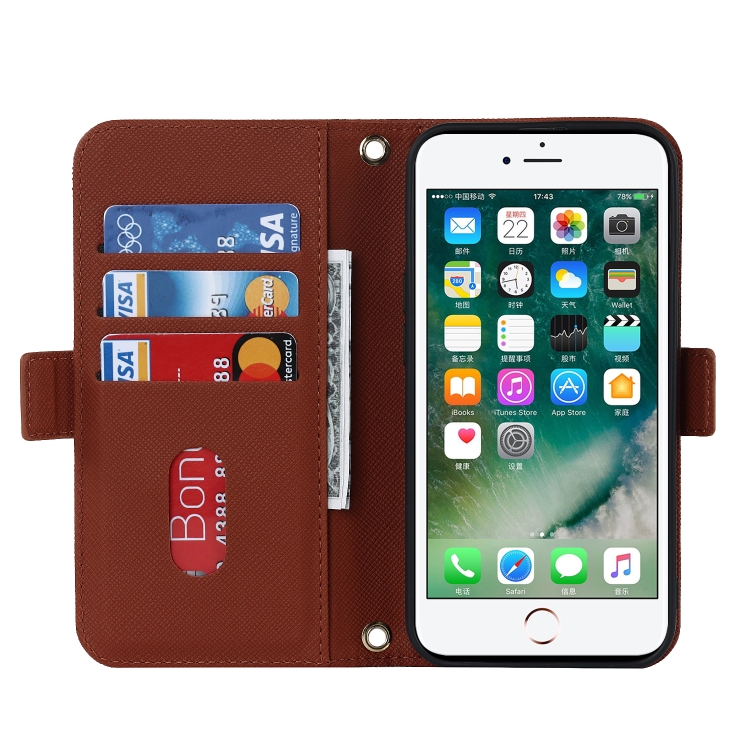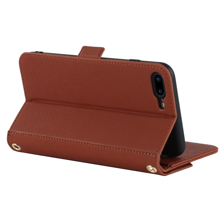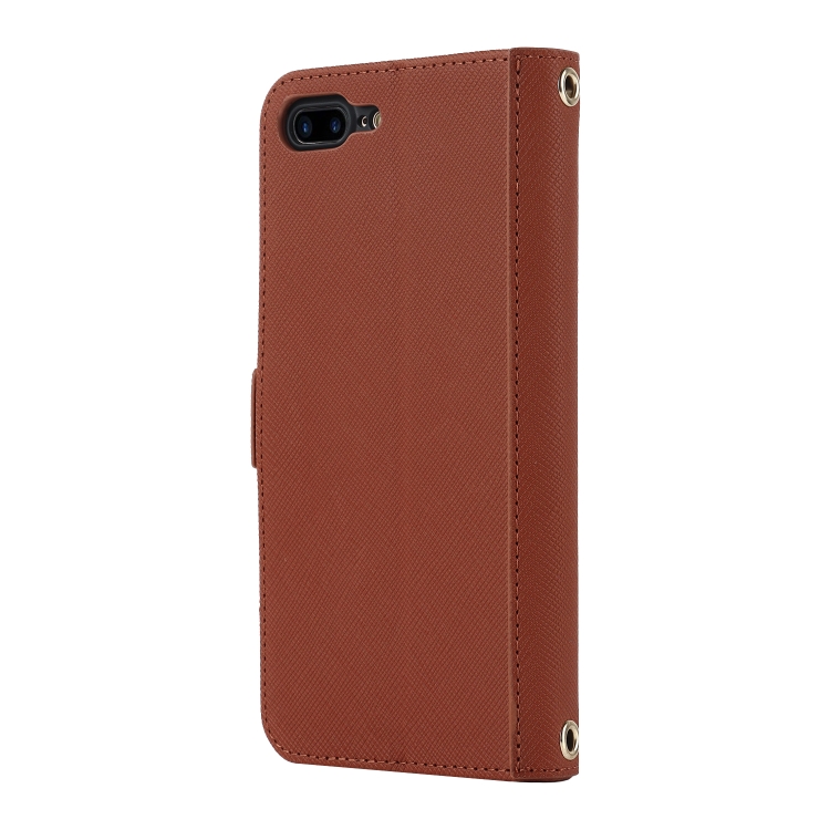 Funda para iPhone 8 Plus / 7 Plus Cross Texture Lanyard Leather Phone Case (Marrón)