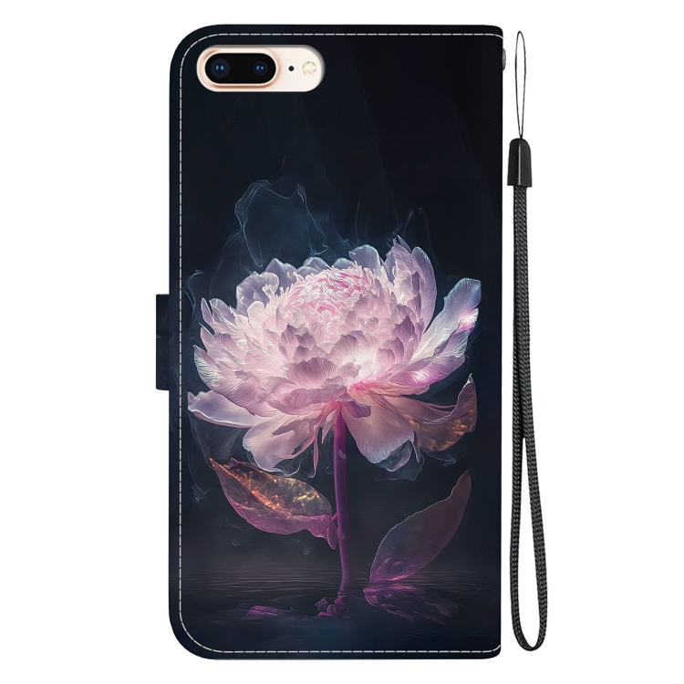Funda para Teléfono iPhone 8 Plus/7 Plus Cuero Dibujo Coloreado Textura de Cristal (Peonía Púrpura)