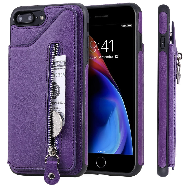 Funda Protectora para iPhone 8 Plus y 7 Plus a Prueba de Golpes con Cremallera y Doble Hebilla (Púrpura)