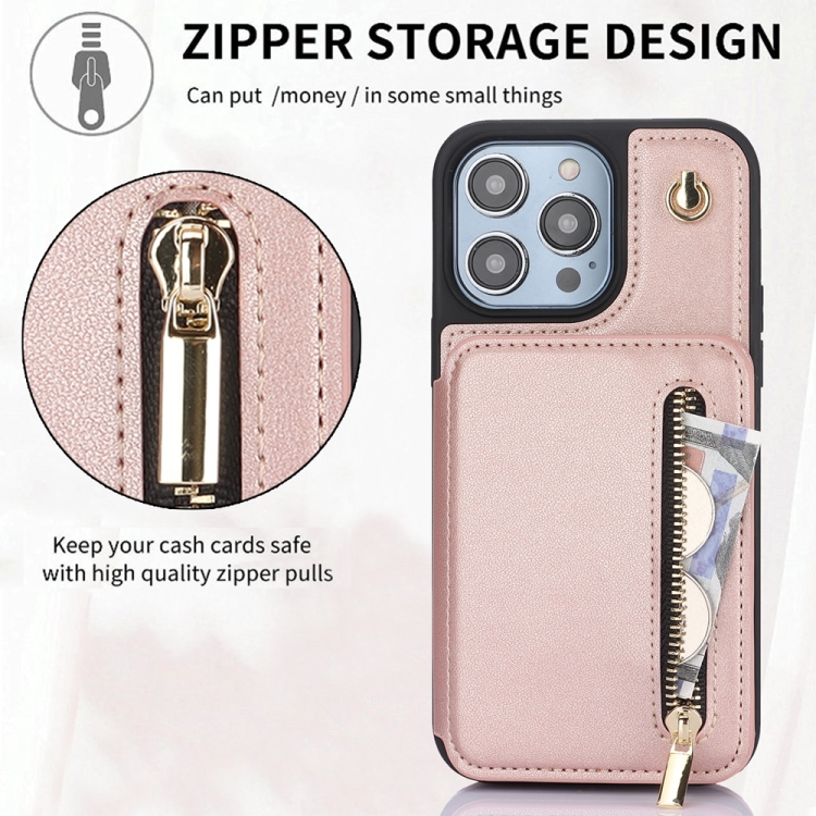 Estuche para Teléfono Ym006 para iPhone SE 2020/8/7 con Bolsa para Tarjetas Cremallera y Cordón Doble (Oro Rosa)