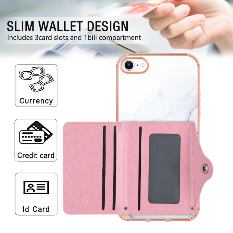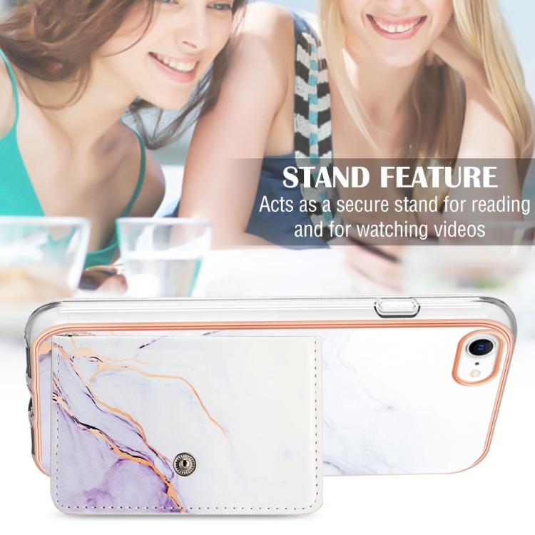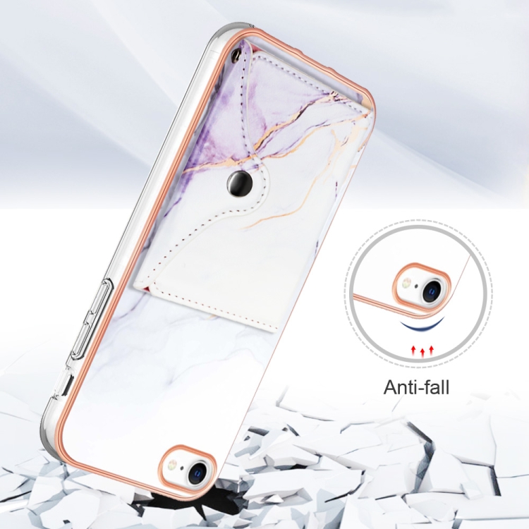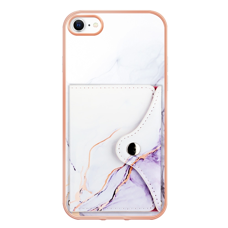 Funda para Teléfono iPhone SE 2022/SE 2020/8/7 con Ranura para Tarjeta Imd y Patrón de Mármol (Blanco y Morado)