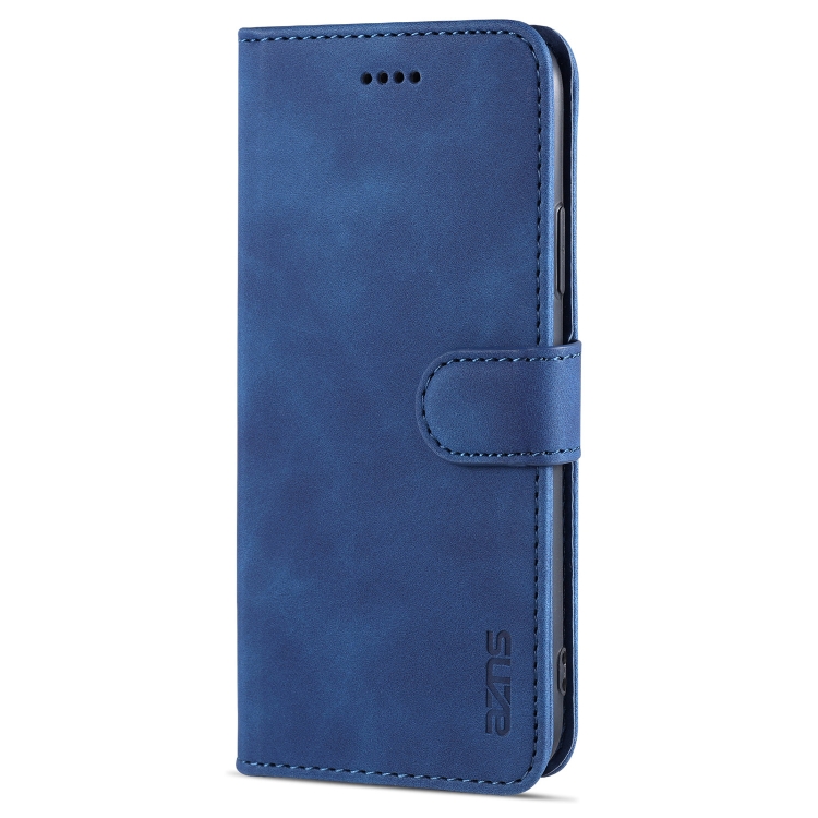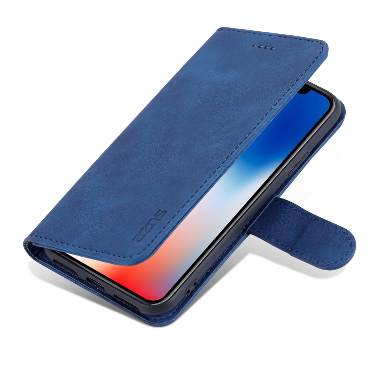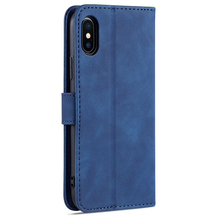 Funda de Cuero Azns Skin Feel Calf Texture para iPhone X Xs con Tapa Horizontal Ranuras Tarjetas Soporte Billetera (Azul)