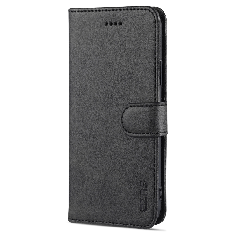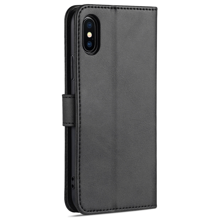 Funda de cuero Azns Skin Feel Calf Texture para iPhone X / Xs con tapa horizontal, ranuras para tarjetas, soporte y billetera (Negro)