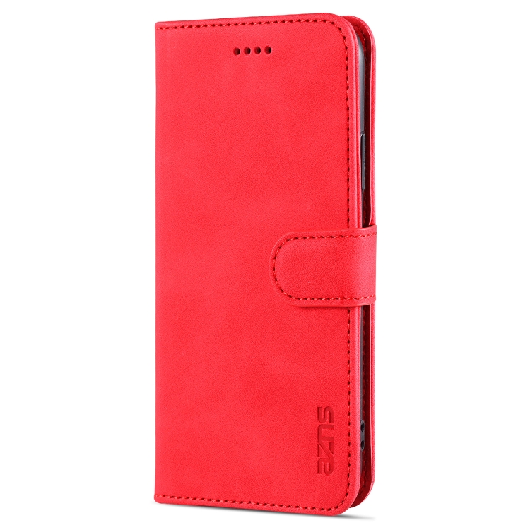 Funda para iPhone X Xs Azns Skin Feel Calf Textura Cuero Tapa Horizontal Ranuras Tarjetas Soporte Billetera (Rojo)