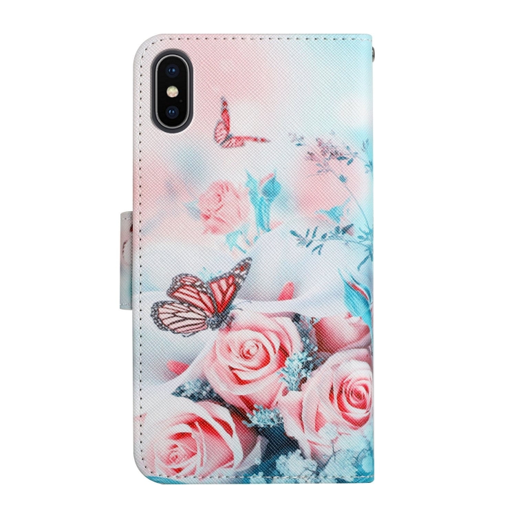 Estuche de Cuero para iPhone X Xs con Tapa Horizontal Soporte Ranura para Tarjeta y Billetera (Mariposa de Peonía)
