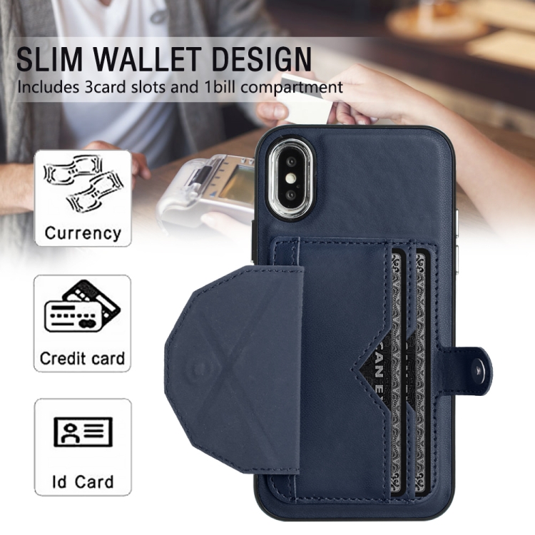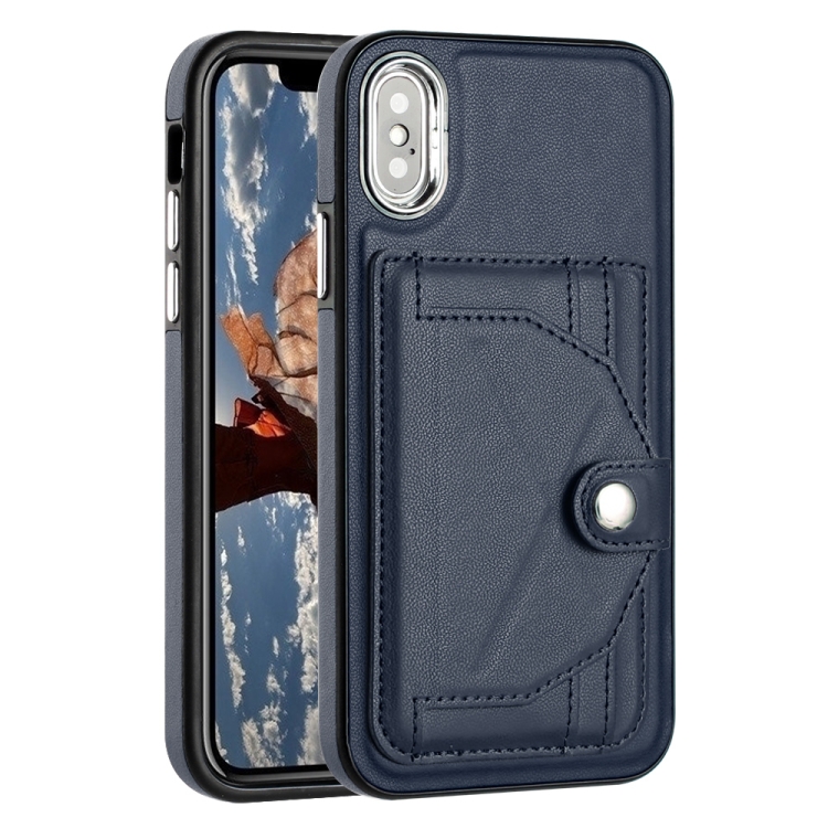 Funda de Teléfono Apple iPhone X / Xs Cuero a Prueba de Golpes con Tarjetero (Azul)