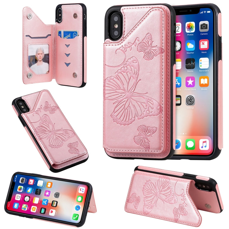 Funda Protectora iPhone X y Xs Estampado Mariposas Soporte Ranuras Tarjetas Marco Fotos (Oro Rosa)